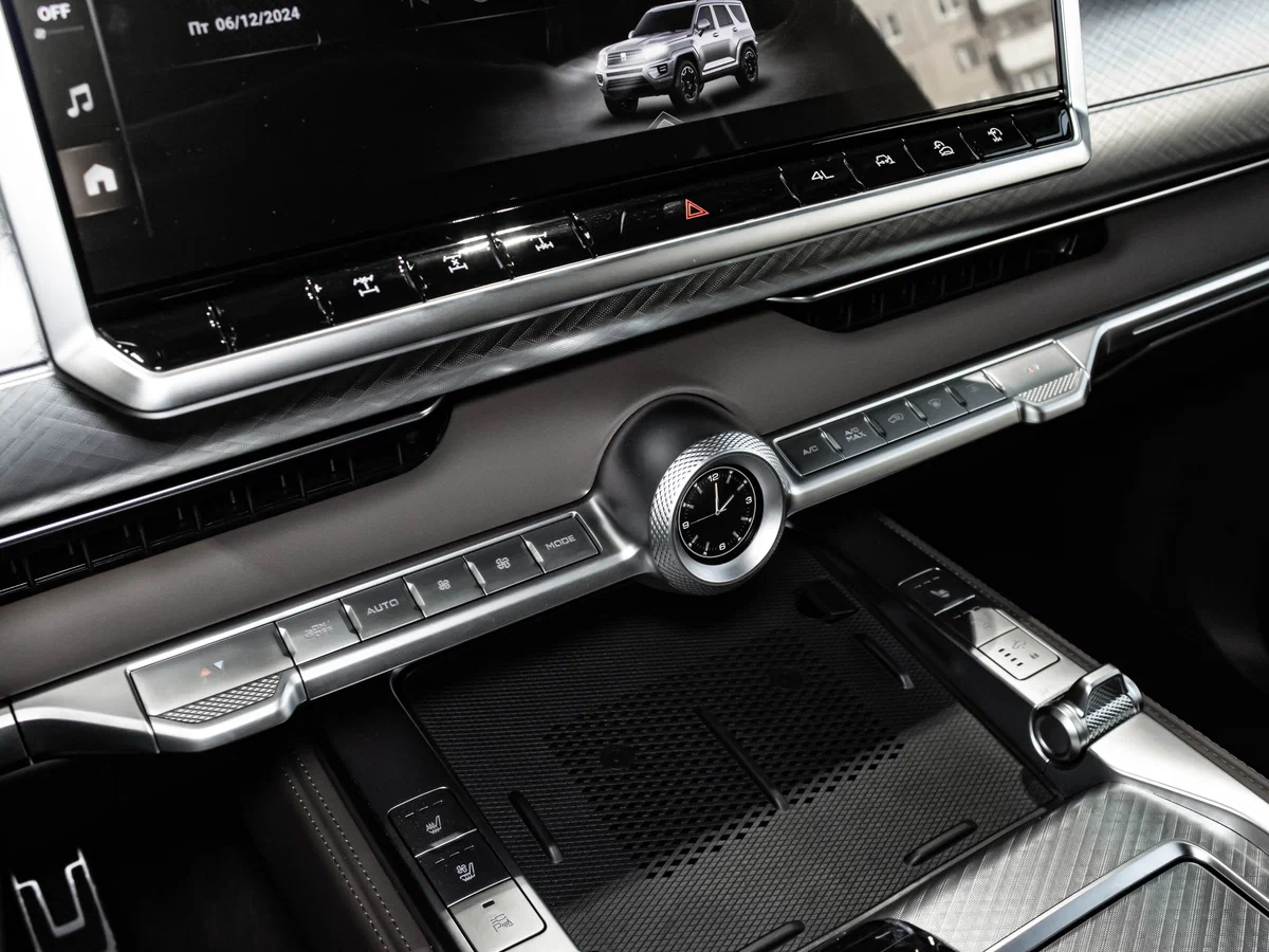 - Двойное беспроводное зарядное устройство во фронтальной консоли (два на 50Вт)
