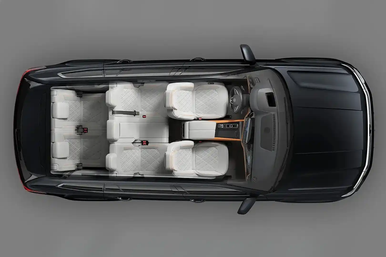 - Задние сиденья с центральным подлокотником, асимметрично складывающиеся, 3-й ряд с двумя полноценными сиденьями